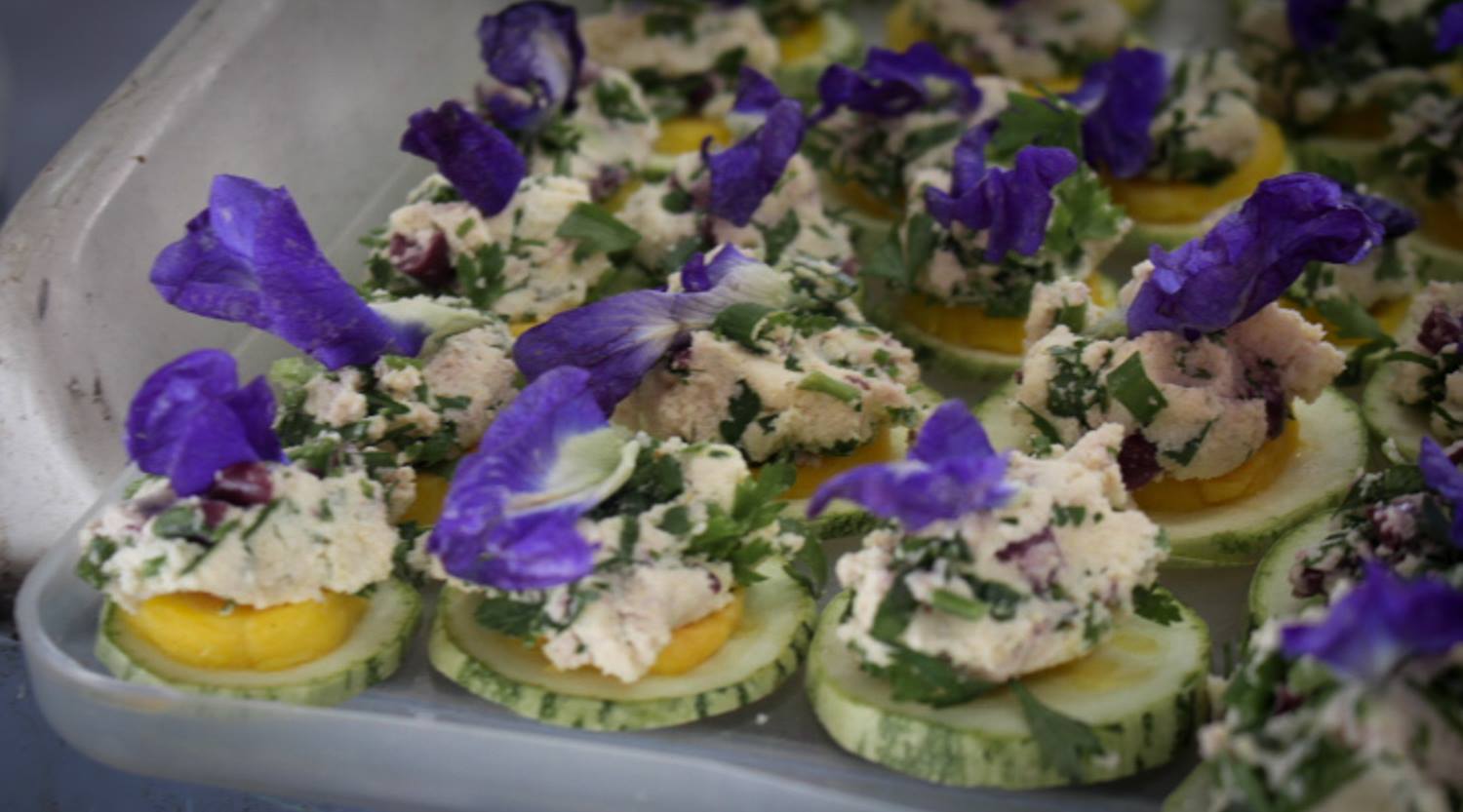 Canapés com flores: clitória (Clitoria ternatea) é o nome desta linda flor.