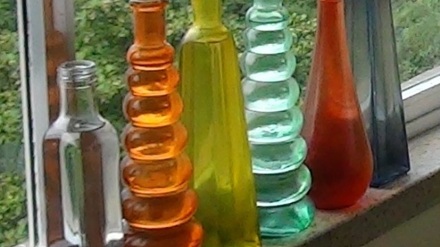 Já as garrafas de vidro onde produzo as águas solarizadas, ficam no peitoril da janela da sala, onde pegam o sol forte e poderoso da manhã. Vou colocando na ordem de chegada para facilitar de saber quais já estão solarizadas, cheias de prana e prontas para consumo e quais estão começando o processo. Perceba que uso garrafas de todas as cores, aproveitando para praticar também a cromoterapia...
