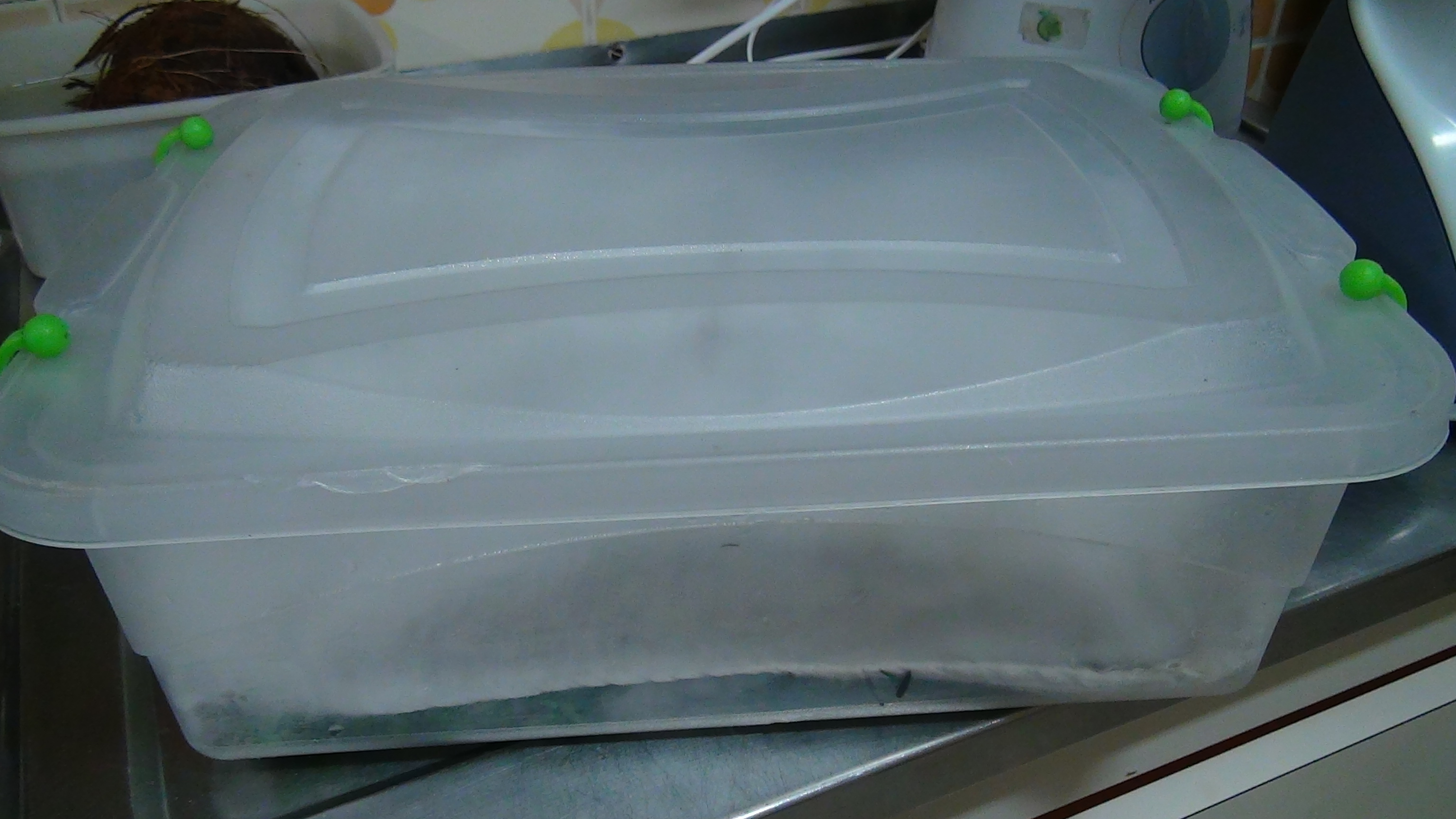 Estas, embalo em caixas organizadoras, já lavadas e higienizadas, secas na centrífuga manual e isoladas do plástico por panos de prato de algodão.
