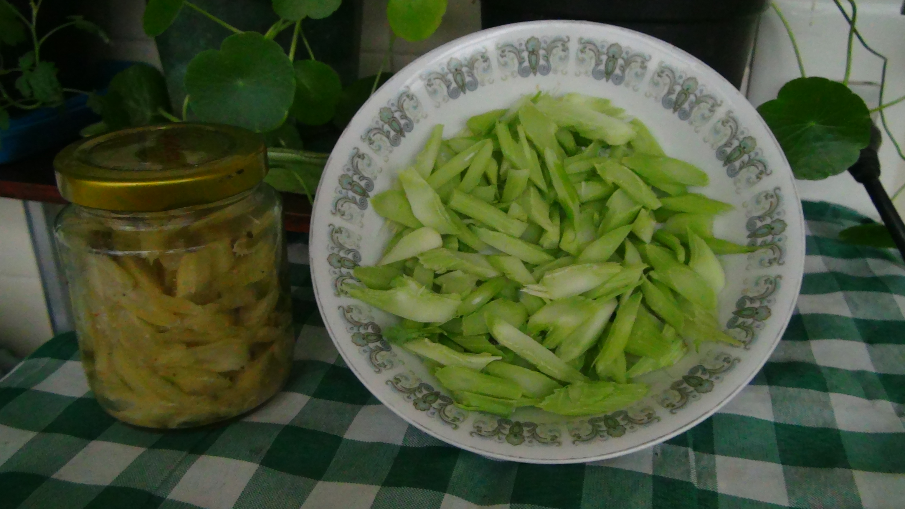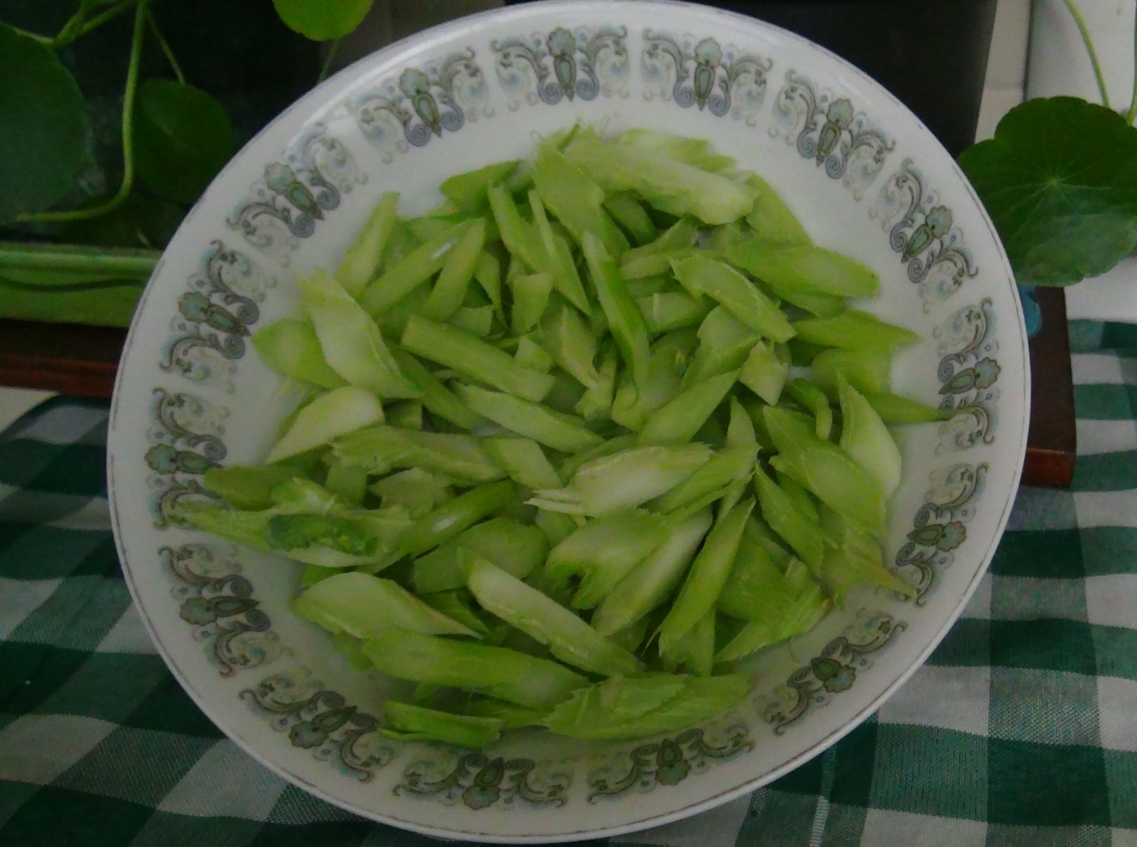 Na sequência os talos são picados a gosto: rodelinhas, dedinhos, enfim...