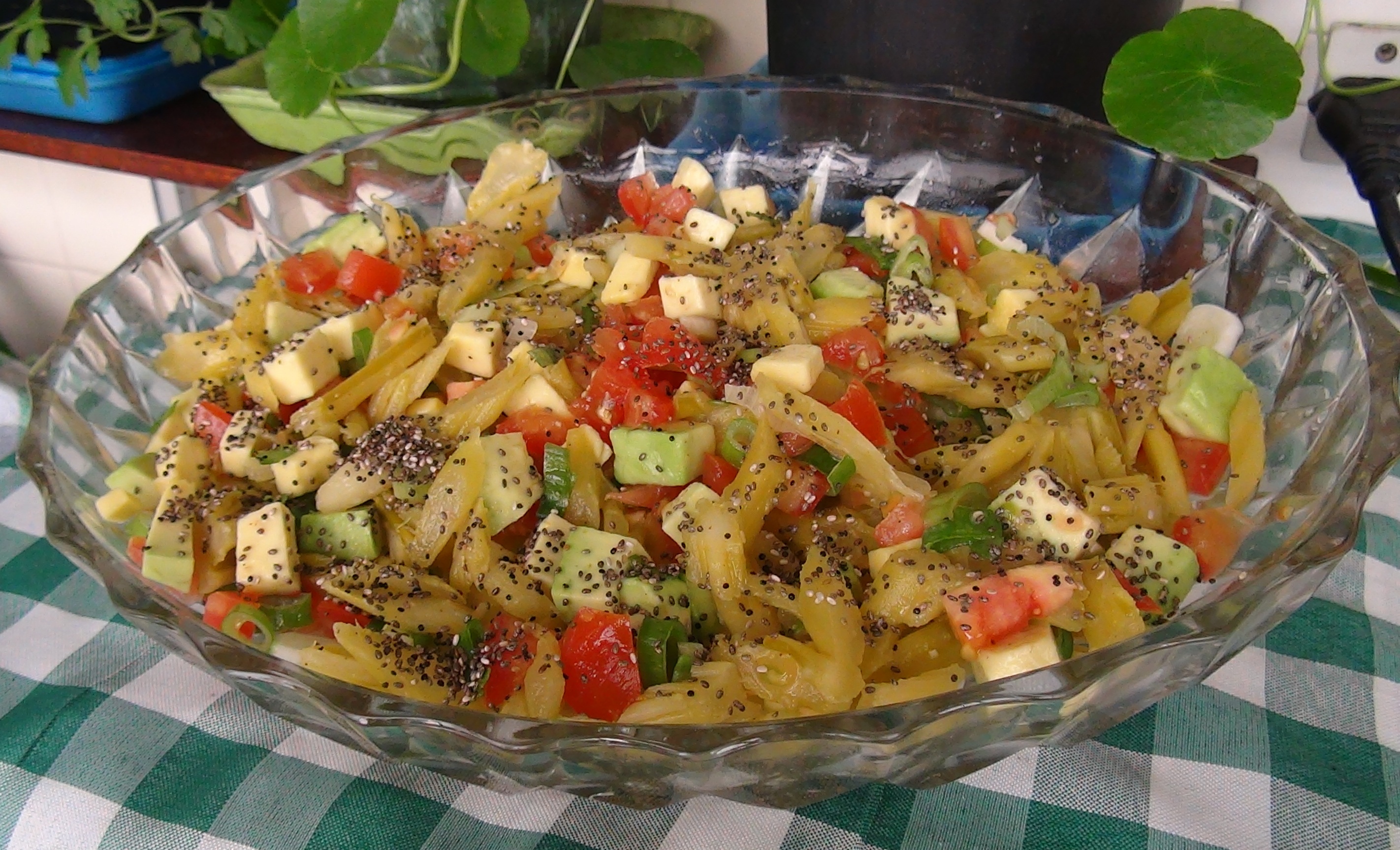 Aqui foi: tomate fresco e abacate picados em cubos, salsa e cebolinha à gosto picados.