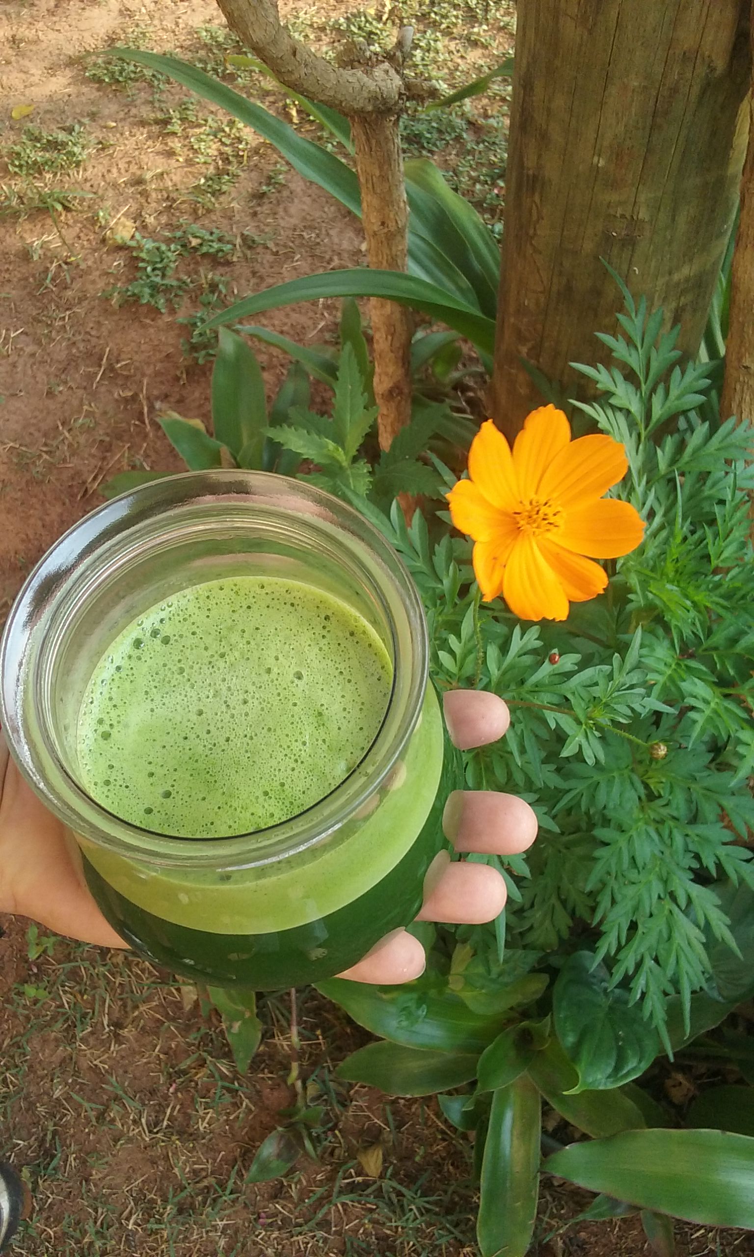 Finalizamos com um suco verde 100% INÉDITO para mim. Jamais acreditei que o mastruz (erva de Santa Maria) poderia ir de vedete em um suco. Sempre indicava aos meus alunos: coloca pouco porque ela é de sabor exótico e invasivo... Foi só conhecer a turma da ANGICO AMIGOS DO CERRADO, lá em Bauru/SP e tive que experimentar, adorar e mudar de ideia...