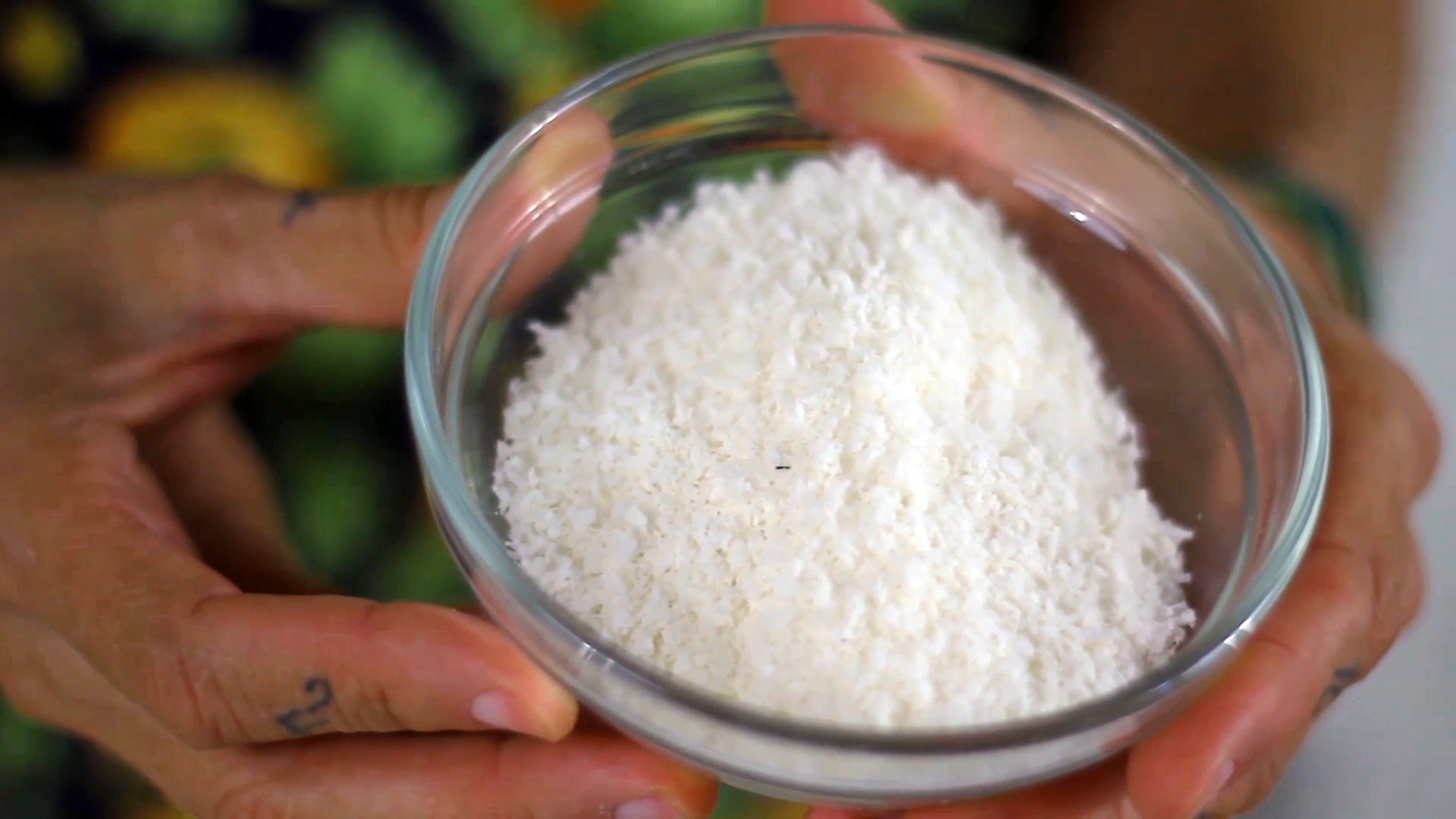Ideal usar a polpa flexível do coco verde, ou coco seco