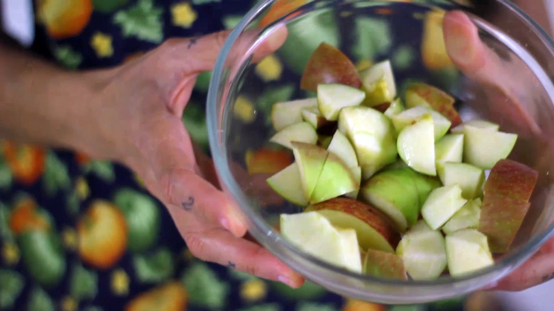 Ideal usar maçãs ácidas como a fuji e a verde.