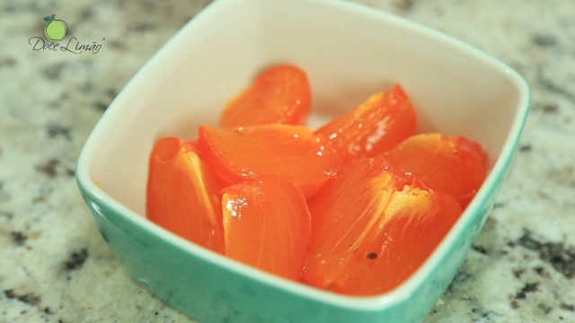 Ingredientes: 1 xícara (chá) de gel de gracilária, 3 caquis bem maduros, 1/2 xícara (chá) de castanha de caju previamente hidratada por 8 horas, 2 colheres (sopa) de polpa de coco verde (opcional), suco fresco de 1/2 limão, 1 pitada de sal integral, 1 colher (sopa) da uva passa branca previamente hidratada por 2 horas.